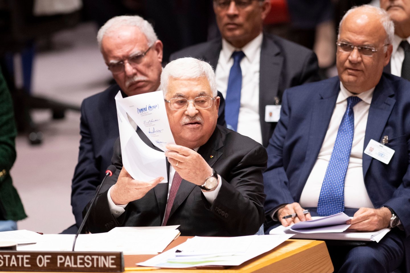 „Jeigu primesite taiką, ji nebus tvari, ji negali būti tvari, – kalbėjo M. Abbasas. – Kas suteikia jums teisę aneksuoti šias žemes?“