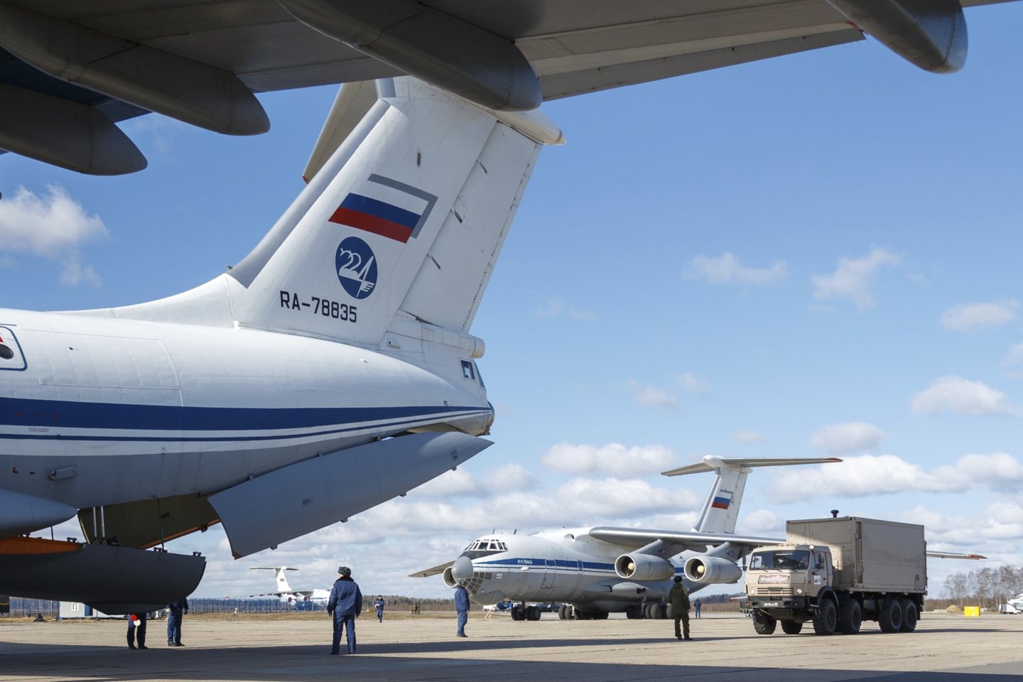 Net kelis kartus iš Rusijos į Italiją keliavo humanitarinė pagalba. Prieš porą savaičių vyko 7 kariniai automobiliai ir 3 lėktuvai. po kurio laiko dar viena humanitarinės pagalbos siunta – ir vėl procesą kontroliavo Rusijos kariškiai. Rusija teigė, kad tai humanitarinė pagalba, tačiau politikos analitikas M.Laurinavičius situaciją vertina kitaip.