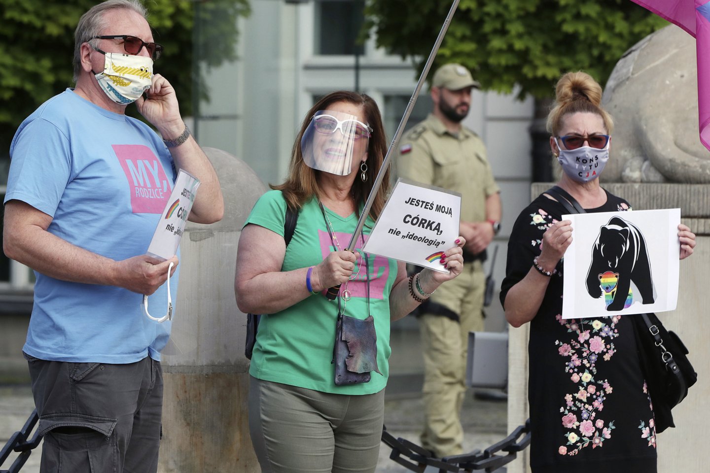 „Tai, ką sakote apie mūsų vaikus, skaudu ir nepaprastai žalinga“, – sakė demonstracijoje dalyvavusi Helena Biedron, kairiojo sparno kandidato į prezidentus Roberto Biedrono motina.