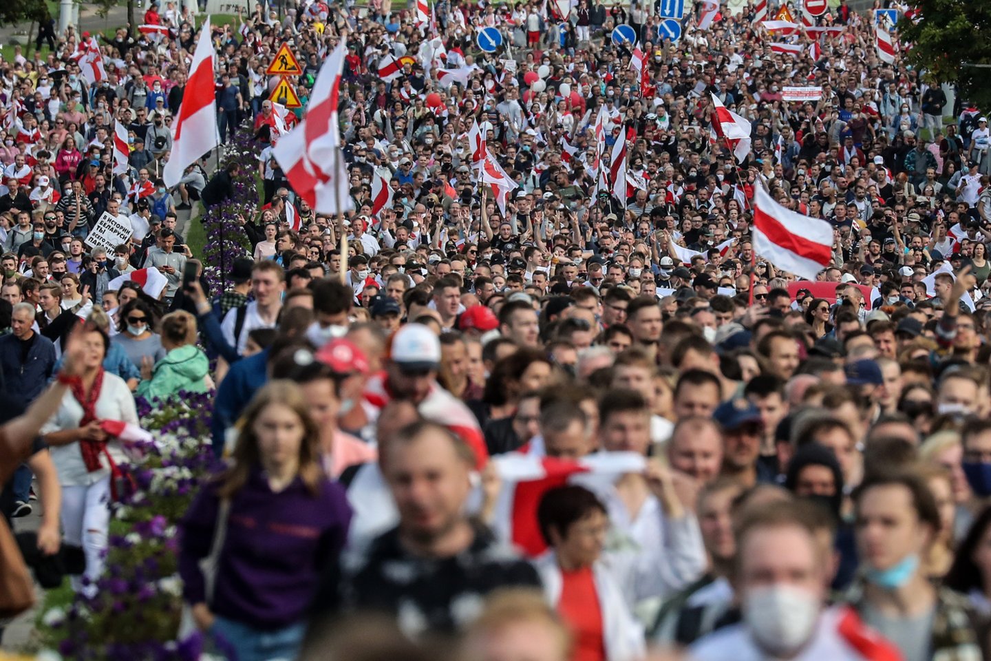 Tuo tarpu liudininkai pranešė, kad Minske sekmadienį vykusioje antivyriausybinėje demonstracijoje dalyvavo per 100 tūkst. žmonių.