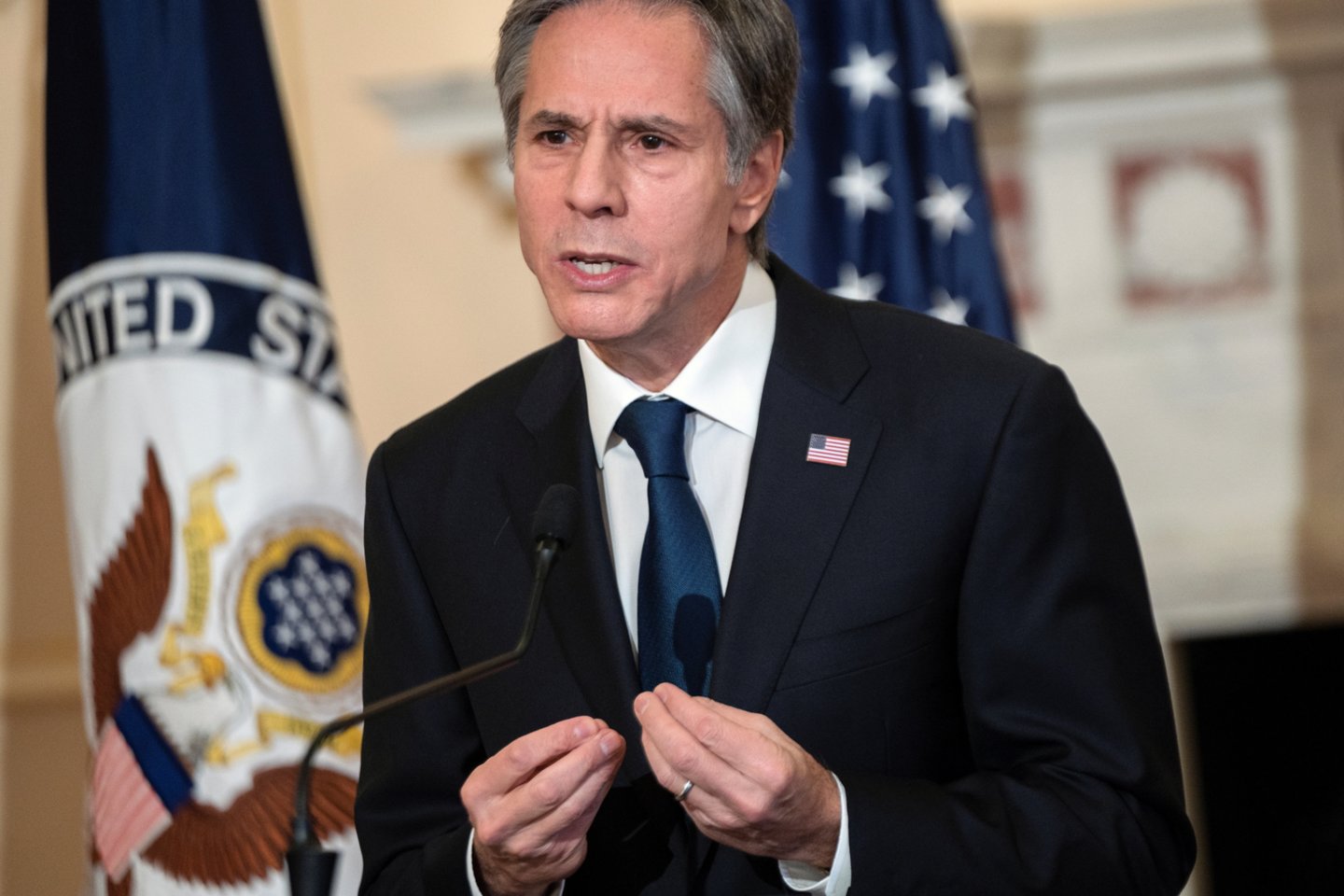 Jis kalbėjo spaudos konferencijoje, surengtoje po „2 + 2“ formato derybų, kuriose taip pat dalyvavo Amerikos gynybos sekretorius Lloydas Austinas, Pietų Korėjos URM vadovas Chung Eui-yong ir gynybos ministras Suh Wookas.