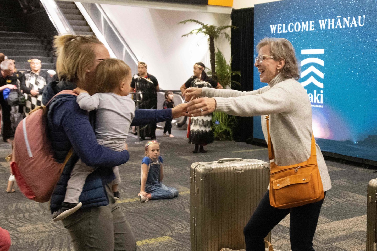 Ant žole apaugusio pylimo prie Velingtono oro uosto didžiulėmis raidėmis buvo užrašyta „SVEIKA ATVYKUSI, ŠEIMA“.