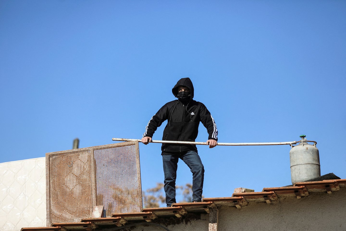 „Mes šiame name gyvenome nuo 1950-ųjų“, – nuo namo stogo sakė M. Salhiyos šeimos narys Abdallah Ikermawi.