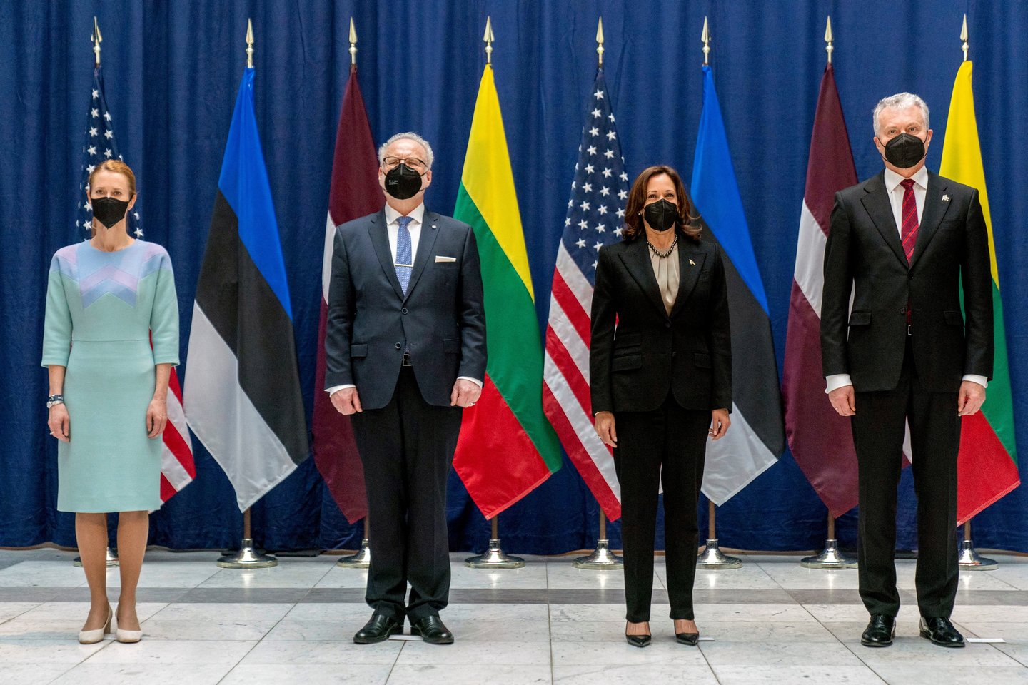„Pripažįstu grėsmes... Palaikome jus šiuo ir daugeliu kitų klausimų... Laikomės išvien kaip NATO sąjungininkai“, – kalbėjo K. Harris, Miunchene pradėdama susitikimą su Latvijos, Estijos ir Lietuvos lyderiais.