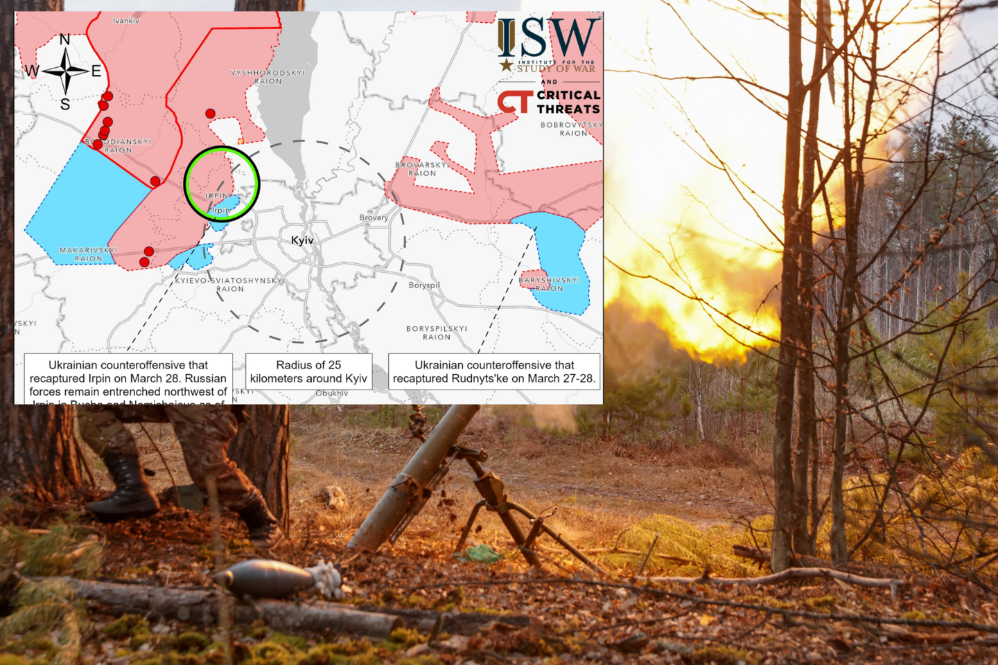 „Rusijos pajėgos aplink Kijevą ir toliau bombarduos sostinę, o į Baltarusiją atsitraukusios pajėgos veikiausiai artėjančią savaitę pasirodys kitose linijose“, – teigia understandingwar.org.