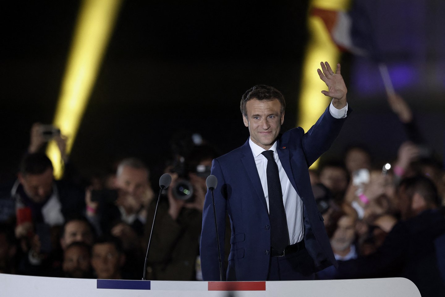 „Privalu rasti atsakymą į pyktį ir nesutarimus, paskatinusius daugelį mūsų tėvynainių balsuoti už kraštutinius dešiniuosius. Tai bus mano ir mane supančiųjų atsakomybė“, – E. Macronas pareiškė švęsdamas rinkimų pergalę prie Eiffelio (Eifelio) bokšto Paryžiaus centre, kai prognozės parodė, jog jis buvo perrinktas.
