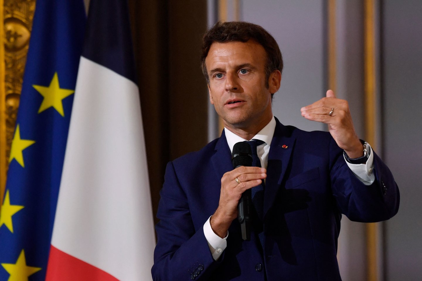 Išvykdamas iš Paryžiaus aplankyti karių, pasiųstų į Rumuniją reaguojant į Rusijos invaziją į Ukrainą, E. Macronas sakė, kad „ateinantys mėnesiai bus sunkūs“, tačiau paragino žmones paremti jį vardan „aukštesnio nacionalinio intereso“ ir „sveiko proto“.