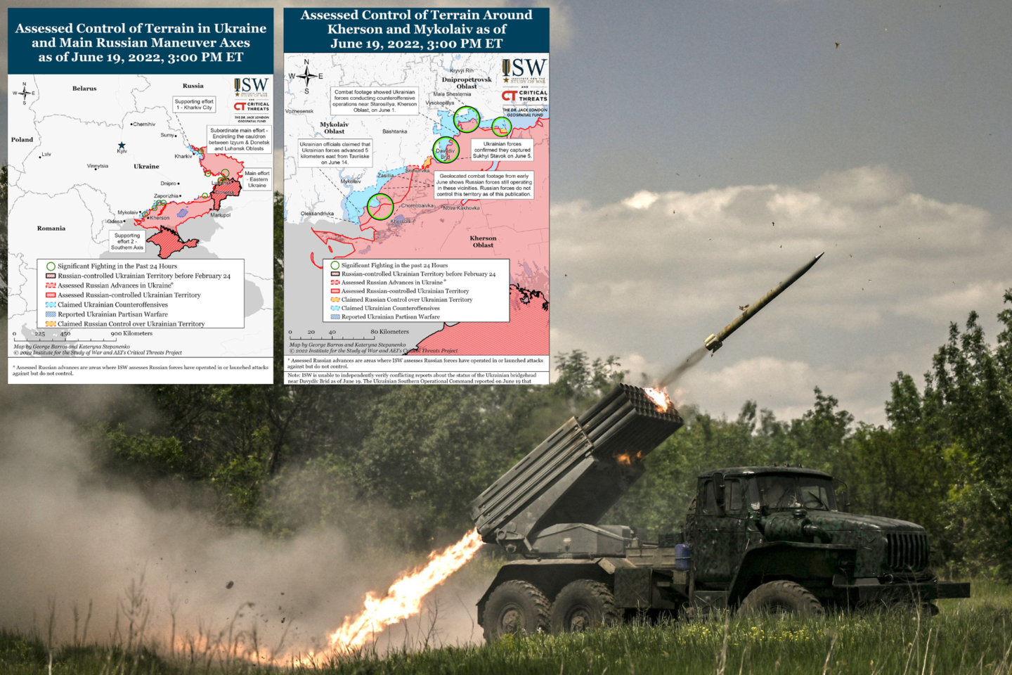 ISW nurodo, kad Rusijos pajėgos ir toliau bandys perimti anksčiau minėto T1302 greitkelio kontrolę, nes agresorių puolimas Severodonecko ir Lisyčansko srityse stipriai įstrigo.