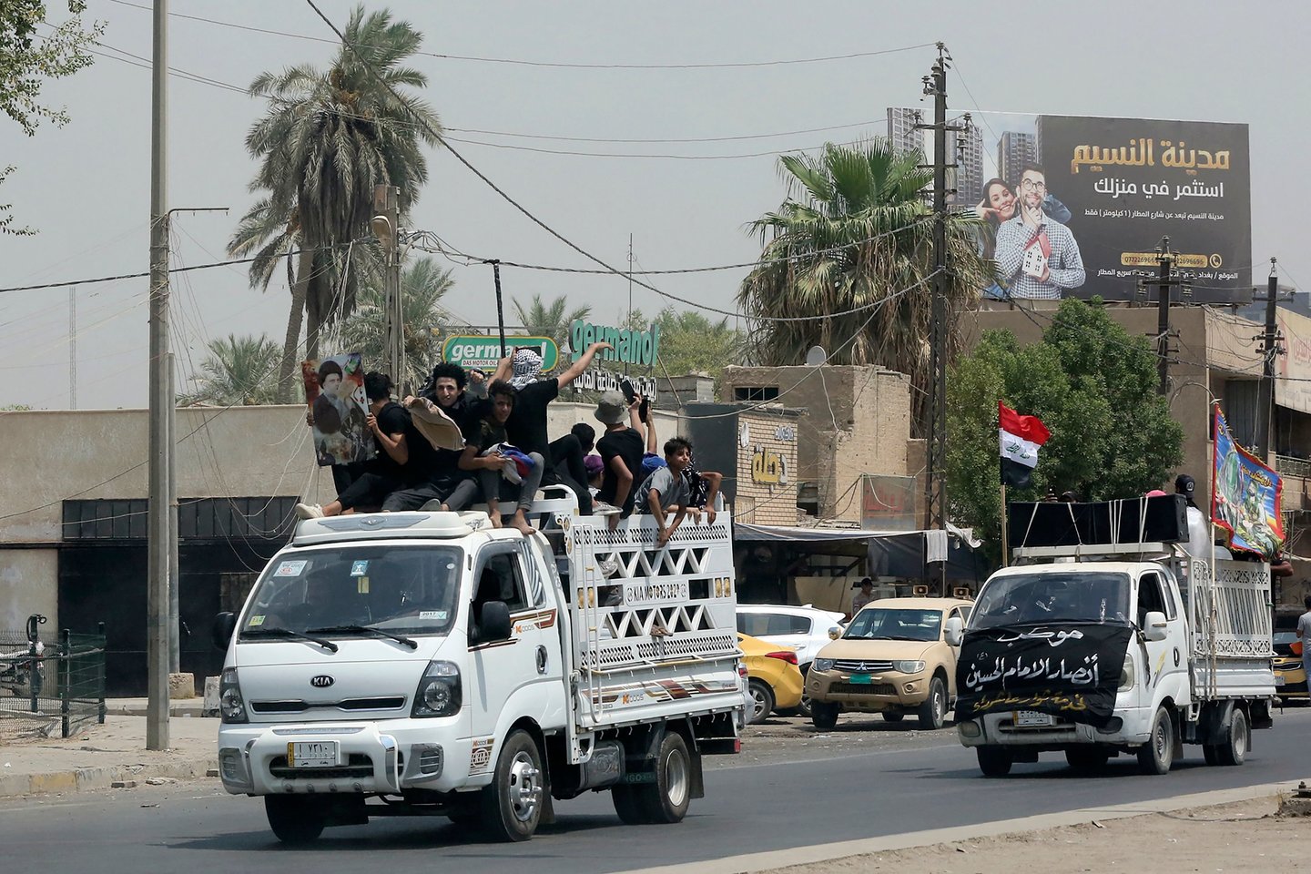 Trečiadienį įtakingo šiitų musulmonų pamokslininko ir politinio lyderio Moqtados Sadro sekėjai penktą dieną tęsė masinį sėdimąjį protestą šalia parlamento.