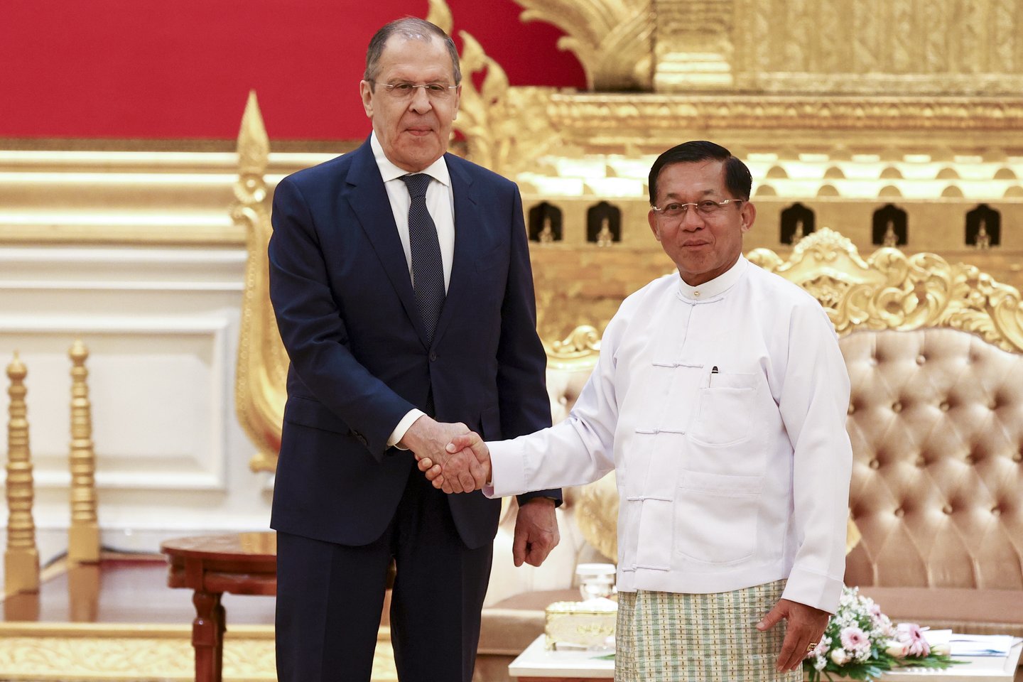 Susidūrusi su Vakarų sankcijomis ir tarptautine izoliacija, chunta siekia stiprinti ryšius su pagrindine sąjungininke ir ginklų tiekėja Rusija, kurios įsiveržimą į Ukrainą vadina „pateisinamu“.