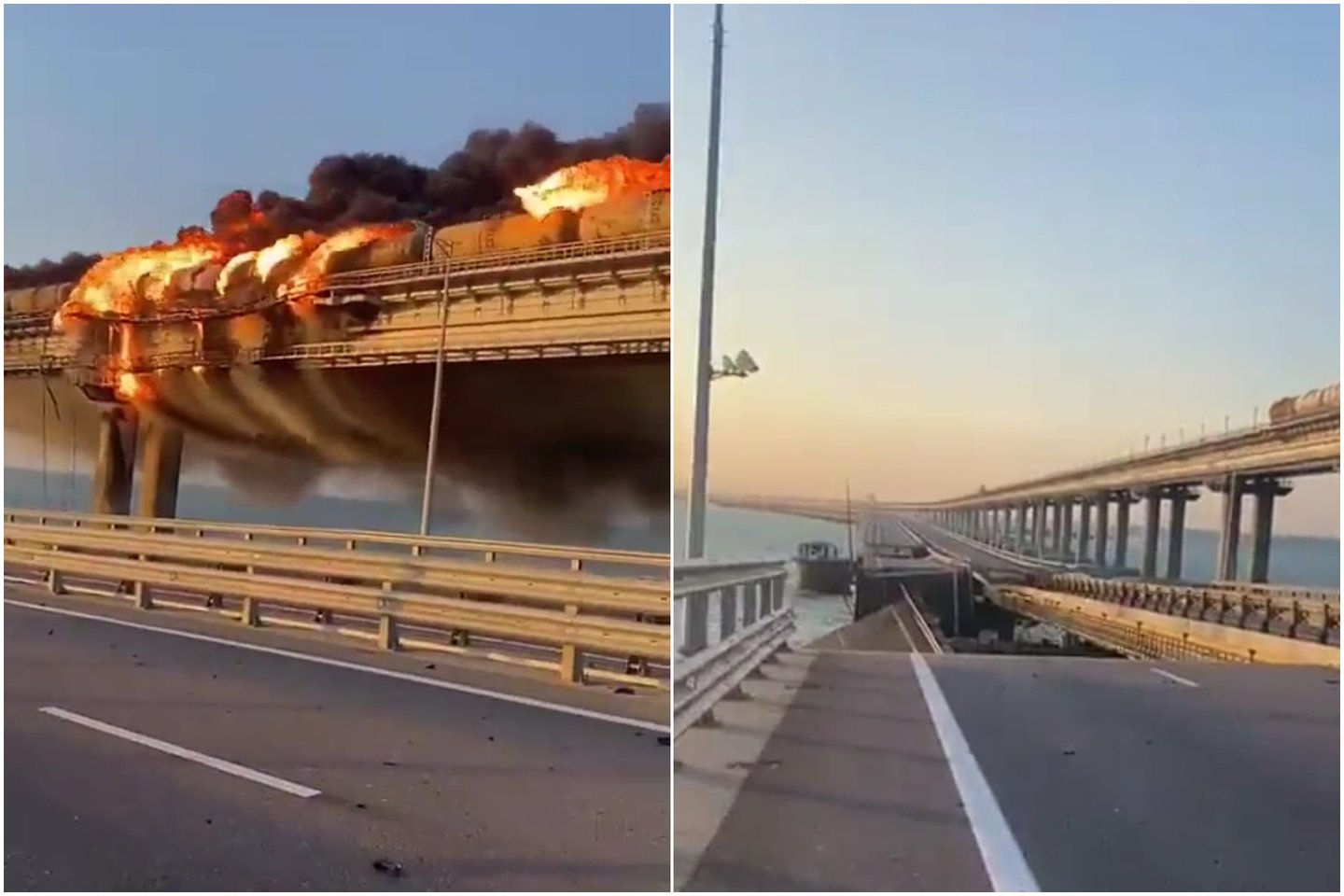 Šis, Kerčės tiltas, dar vadinamas Krymo tiltu, Rusijai yra labai simboliškas ir svarbus logistikos tiekimo kelias, leidžiantis tiekti atsargas iš Krymo į Rusijos okupuotas Ukrainos teritorijas.