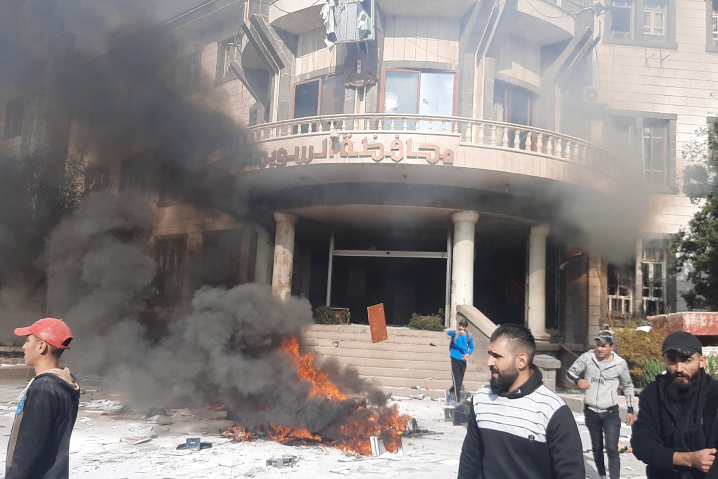 Protestuotojai į vyriausybinį pastatą mėtė akmenis ir jį šturmavo, nuo fasado nuėmė didelę prezidento Basharo al Assado nuotrauką, pranešė karą stebinti organizacija „Syrian Observatory for Human Rights“.