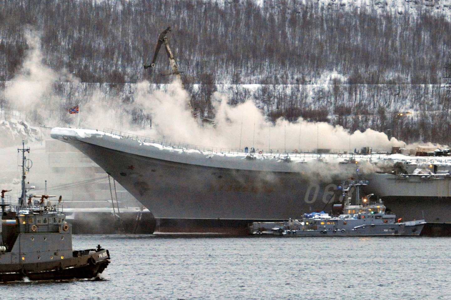 „Lėktuvnešyje „Admirolas Kuznecovas“, kuris stovi laivų remonto gamyklos „Zviozdočka“ sausajame doke, kilo gaisras. Nukentėjusiųjų nėra, evakuota 20 žmonių“, – sakė žurnalistams Rusijos gelbėjimo tarnybų atstovai.
