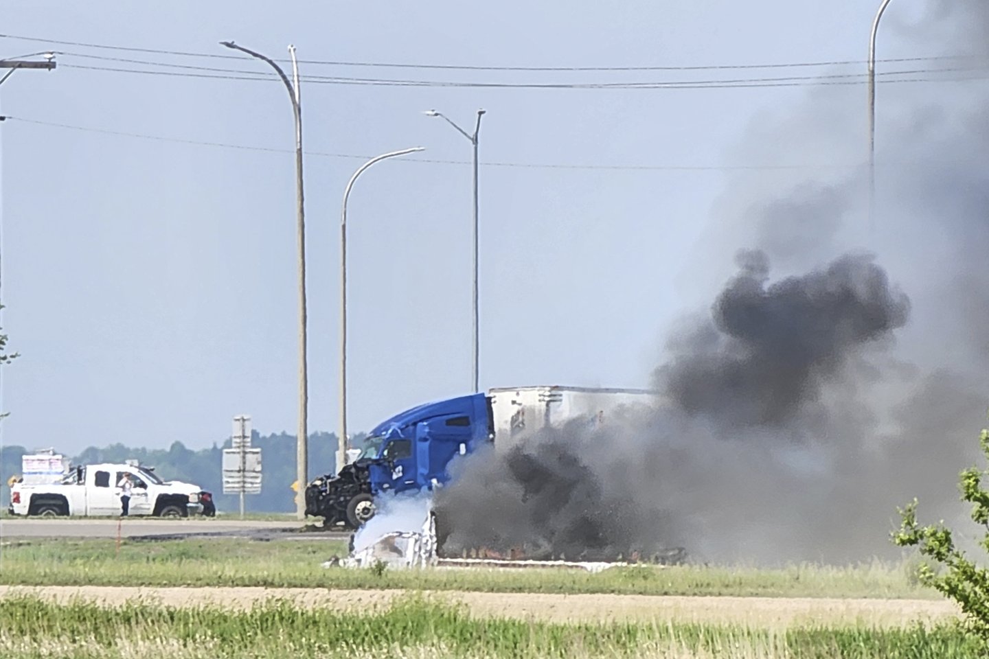 Eismo nelaimė įvyko „Trans-Canada“ greitkelyje į šiaurę nuo Karberio. 10 žmonių dėl įvairių sužalojimų nuvežti į ligonines.