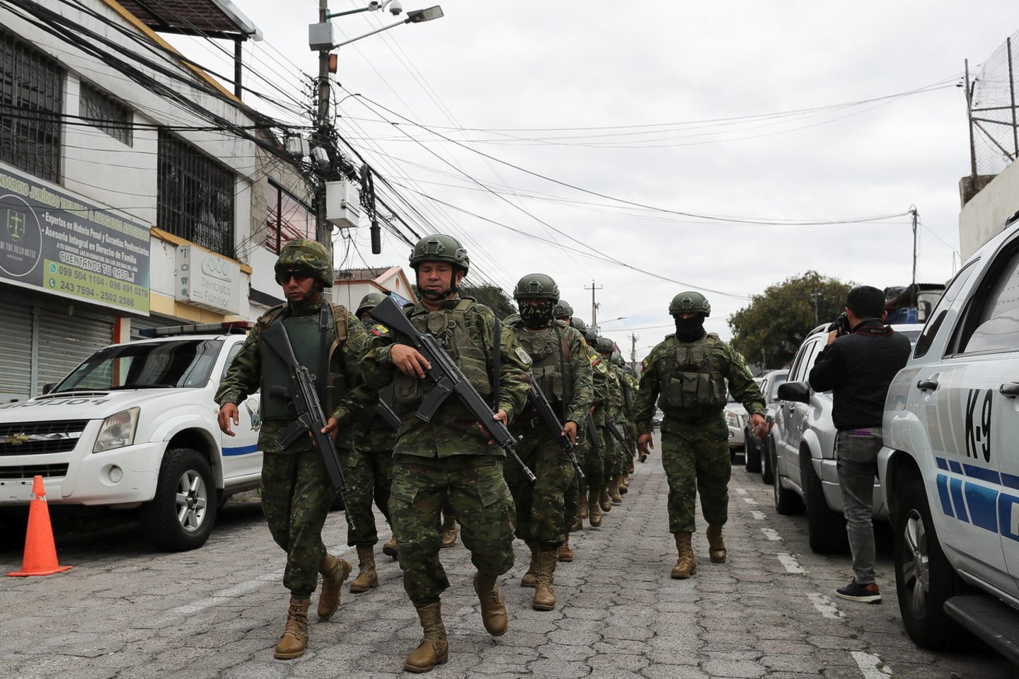 Šimtai kareivių trečiadienį patruliavo beveik ištuštėjusiose Ekvadoro sostinės gatvėse, kai vyriausybė ir prekeivių narkotikais gaujos paskelbė vieni kitiems karą, o gyventojus apėmė baimė.