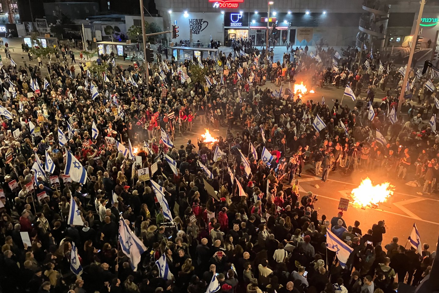„Laikas eina, grąžinkite juos namo“, – Tel Avive reikalavo demonstrantai. Jie gatvėse miesto centre sukėlė kelis nedidelius gaisrus, taip blokuodami vieną pagrindinių transporto arterijų. Protestas buvo nukreiptas ir prieš B. Netanyahu, kurį kritikai kaltina nesuvaldžius krizės po spalio 7 d. „Hamas“ surengto išpuolio Izraelio pietuose. Kaip jau ankstesniais šeštadieniais, žmonės reikalavo vyriausybės atsistatydinimo ir naujų rinkimų. Viena oratorių sakė: „Mano pusbrolis Oferis jau 169 dienas yra „Hamas“ nelaisvėje. O mes jau 169 dienas esame savo vyriausybės nelaisvėje“.