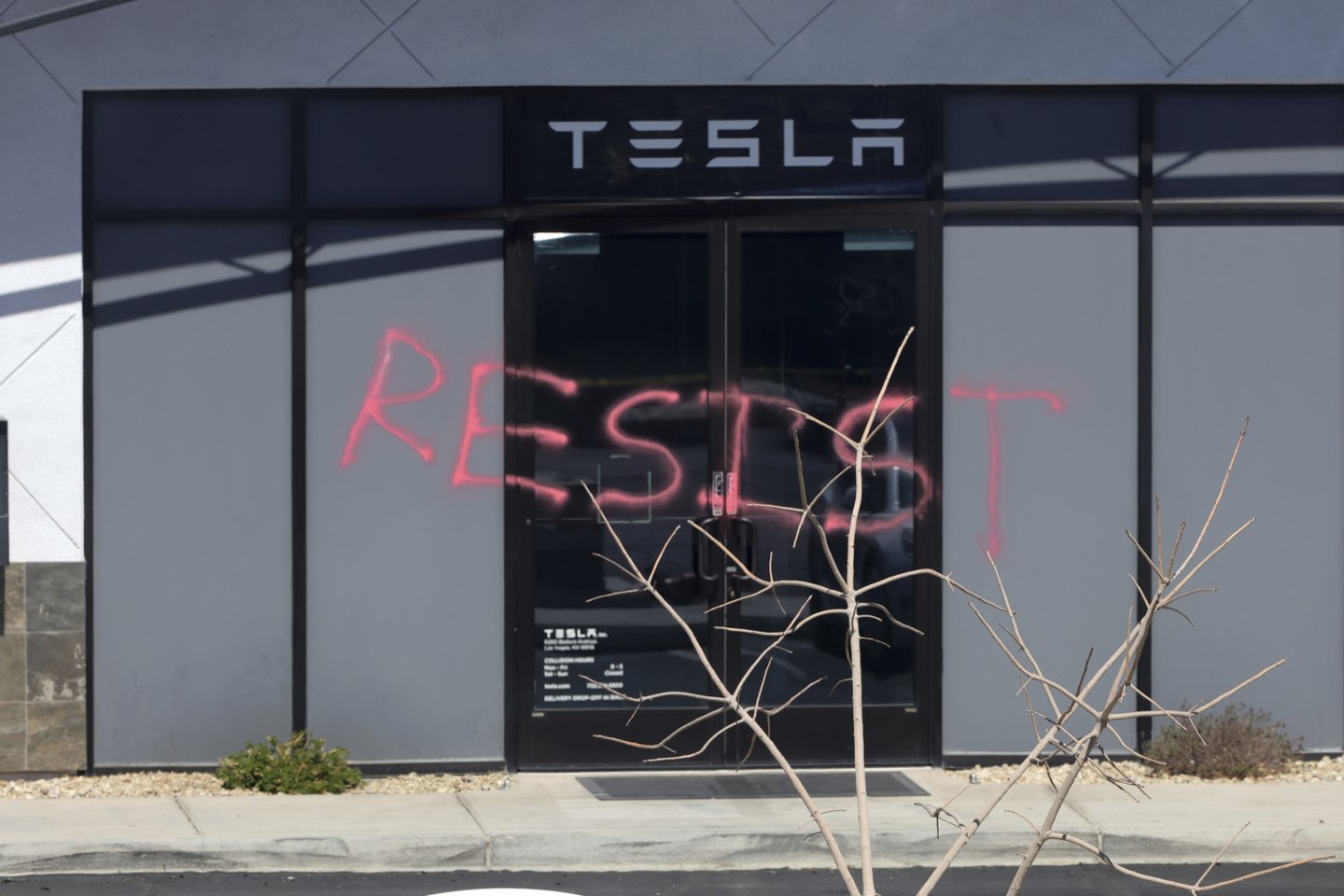 Las Vegase anksti antradienį kelios „Tesla“ transporto priemonės buvo padegtos prie „Tesla“ aptarnavimo centro, ant kurio durų raudona spalva taip pat buvo užrašytas žodis „resist“. Valdžios institucijos teigė, kad bent vienas asmuo į automobilius mėtė Molotovo kokteilius ir paleido kelis šūvius iš ginklo.