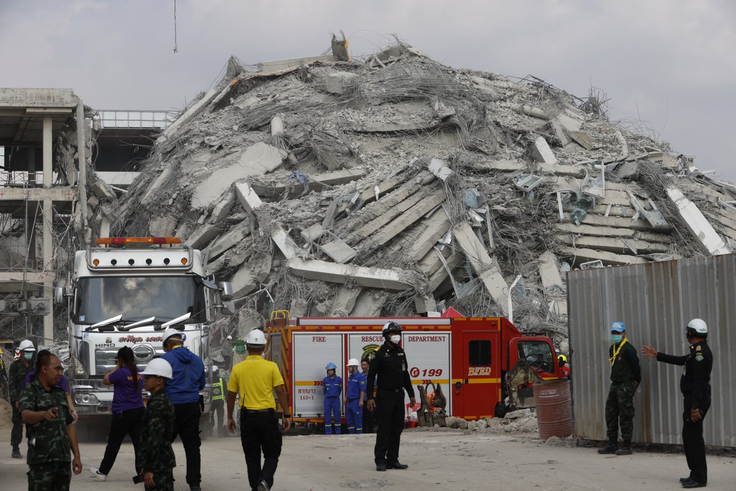 Tailando sostinės gelbėtojai visą naktį dirbo ieškodami darbininkų, įstrigusių sugriuvusiame statomame 30 aukštų dangoraižyje, dėl drebėjimo per kelias sekundes virtusiame griuvėsių ir susiklaipiusio metalo krūva.