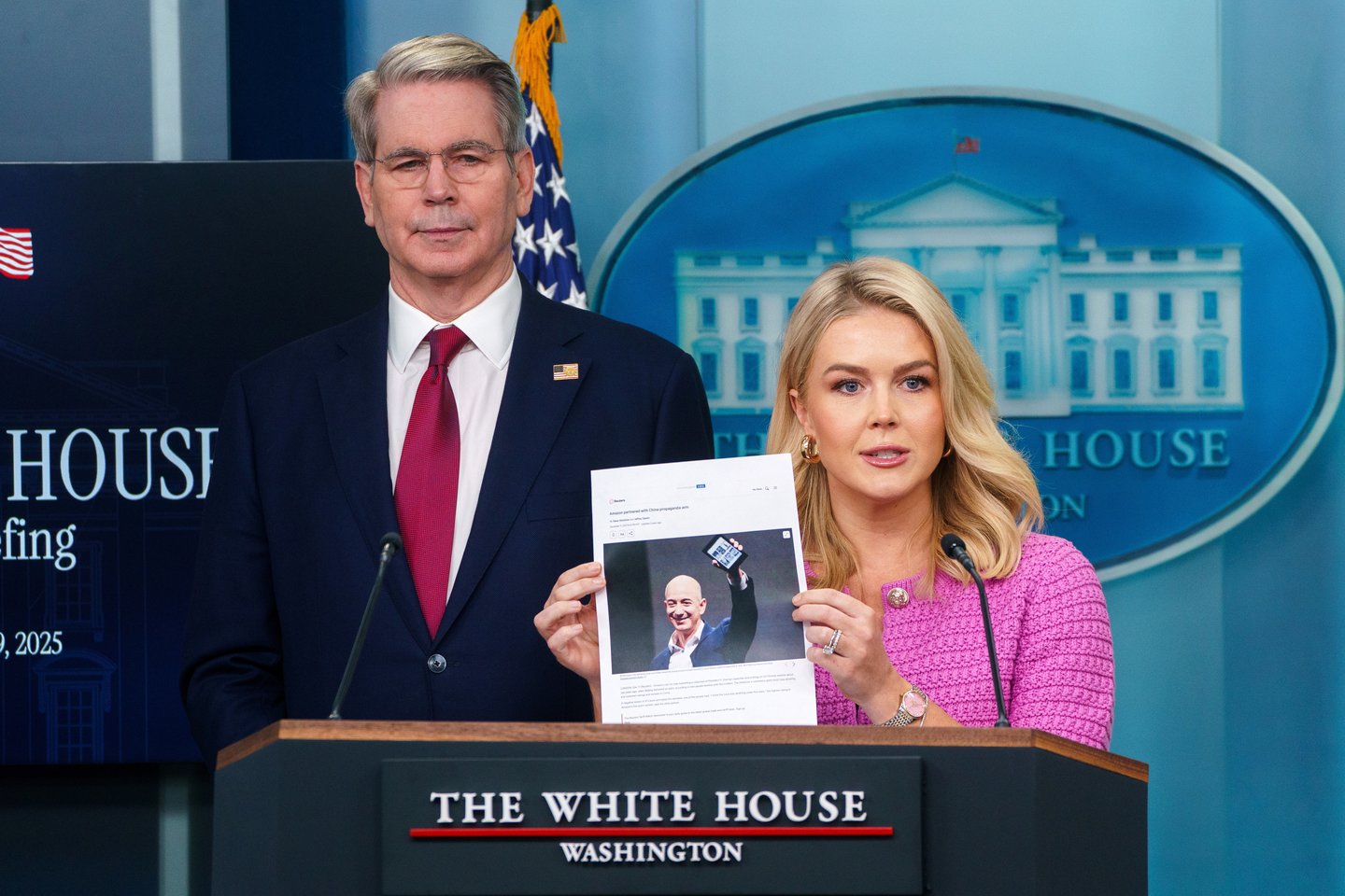 Antradienį K. Leavitt taip pat citavo 2021 m. „Reuters“ pranešimą apie tariamą „Amazon“ ir „Kinijos propagandos padalinio“ partnerystę, kuris savo Kinijos interneto svetainėje cenzūravo naudotojų atsiliepimus apie prezidento Xi Jinpingo kalbas ir raštus.