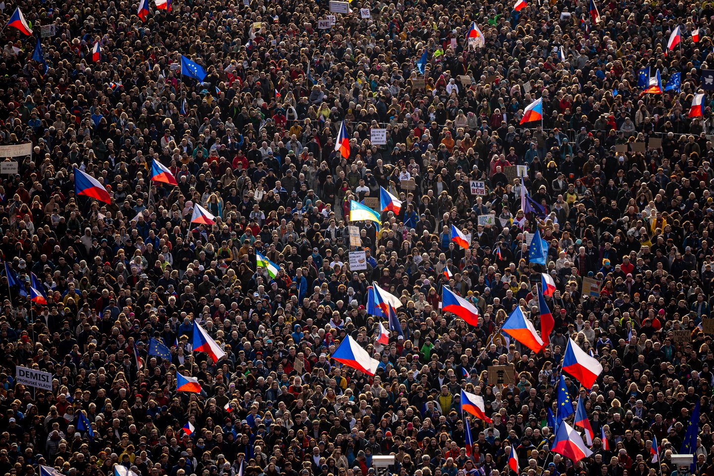 Protestą surengė aljansas „Milijonas akimirkų už demokratiją“, o jo įkūrėjas Mikulašas Minaras kaltino vyriausybę esant autoritarine ir siekiant pasukti Čekiją į Rytus.
