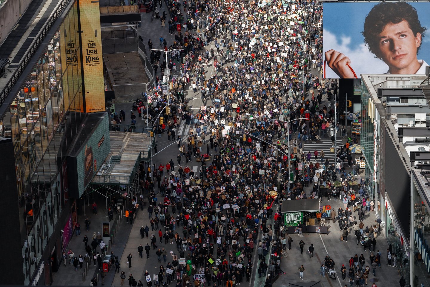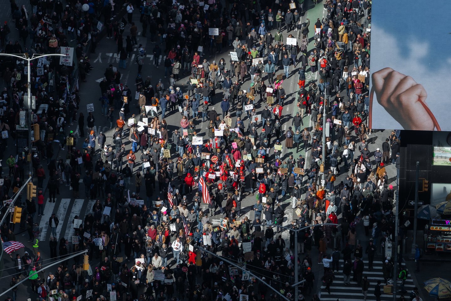 Labiausiai apgyvendintame JAV mieste Niujorke susirinko dešimtys tūkstančių demonstrantų, tarp jų – dažnai D. Trumpą kritikuojantis Oskaro laureatas aktorius Robertas De Niro, kuris prezidentą pavadino „egzistencine grėsme mūsų laisvėms ir saugumui“.