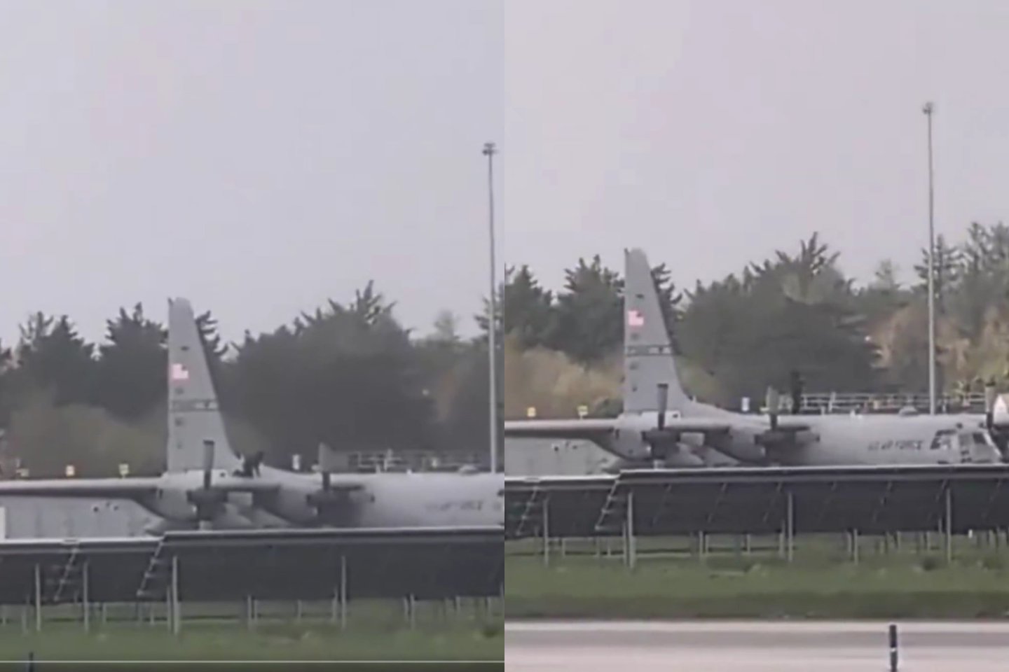 Tyrimas dėl incidento tęsiamas. Socialiniuose tinkluose pasklidusiuose vaizdo įrašuose matyti, kaip asmuo užlipa ant JAV karinių oro pajėgų C‑130 „Hercules“ transporto lėktuvo, stovėjusio atokioje oro uosto riedėjimo tako dalyje.