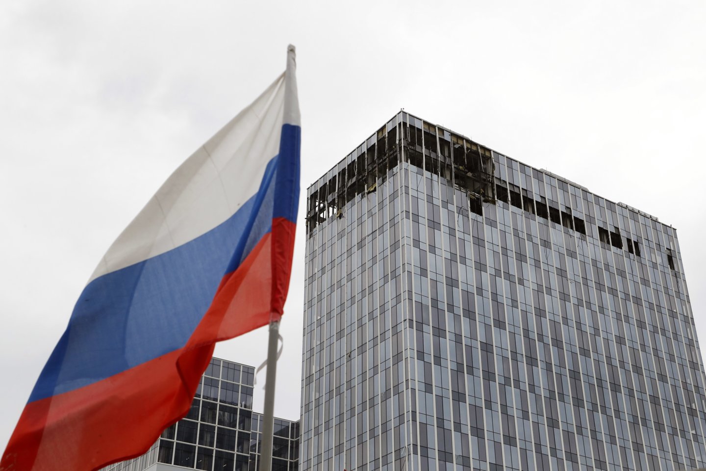 Vaizdai iš Maskvos centro: po dronų atakos apgadintas verslo centras