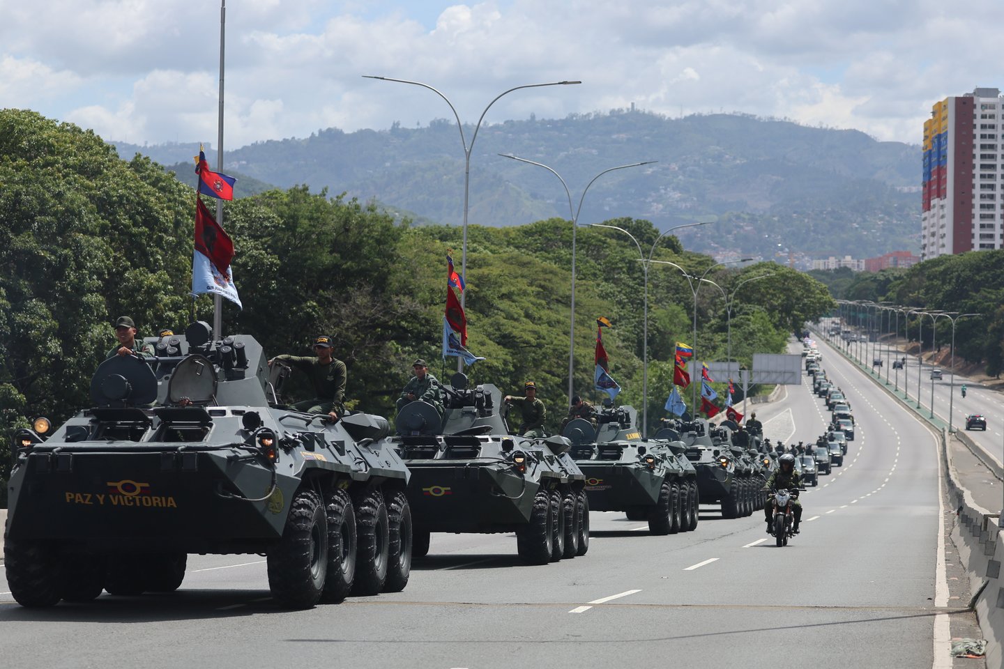 Venesuelos ginkluotosios pajėgos, anot duomenų, netoli pakrantės miesto Cape San Romano atgabeno karinės įrangos, šaudė iš patrankų ir naudojo amfibijas.