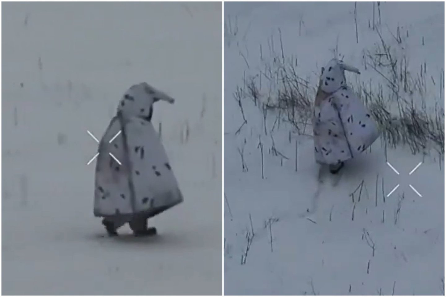 Šis „pingvino“ kostiumas greičiausiai yra rusiškas „nematomumo“, arba apsisaugoti nuo terminių dronų skirtas, apsiaustas.