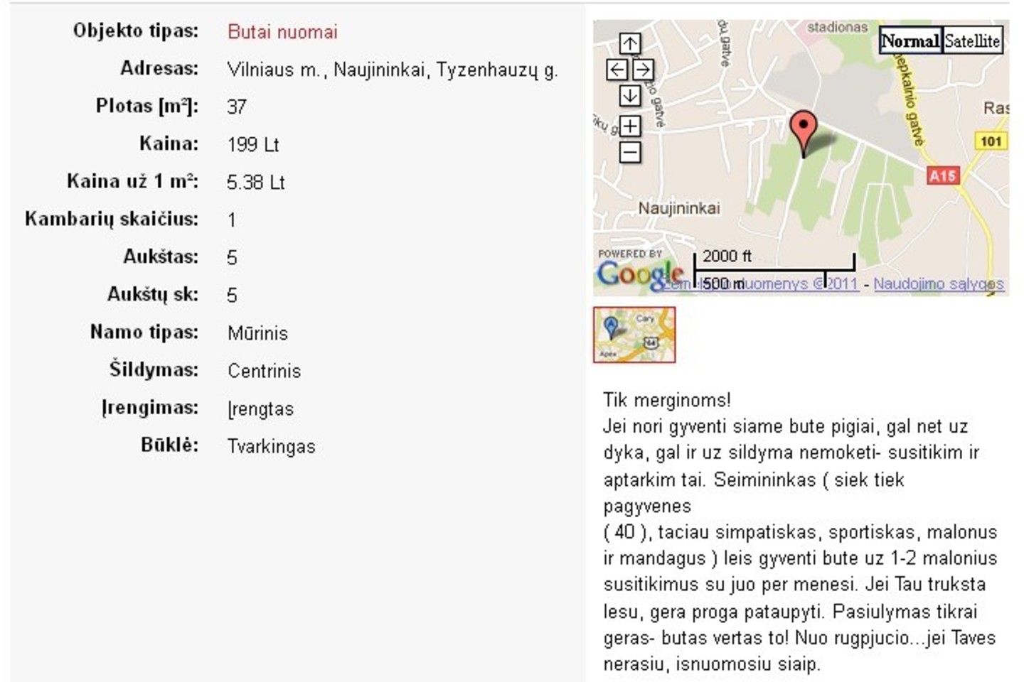 Jis skelbime merginoms siūlo butą nuomotis už „1-2 malonius susitikimus per mėnesį“.