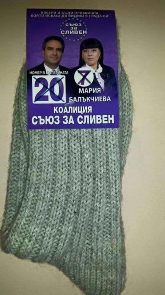 Kandidatai pasirinko įvairius būdus į savo pusę patraukti rinkėjus. Antai Marija Balkčijeva savo rinkimų skrajutę išspausdino ant šiltų vilnonių kojinių etiketės.