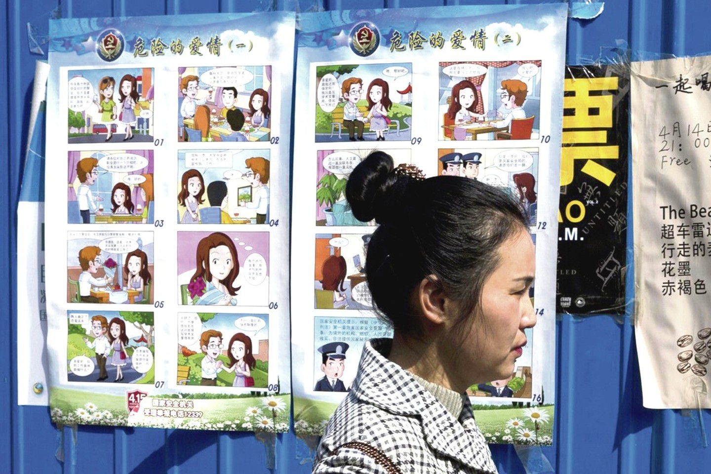 Šį mėnesį Kinijoje buvo paminėta Švietimo apie nacionalinį saugumą diena. Ta proga valstybės valdžia miestų gatvėse iškabino plakatus, kurie perspėja jaunas kines biurokrates saugotis „gražių užsieniečių“, nes jie esą gali būti šnipai.