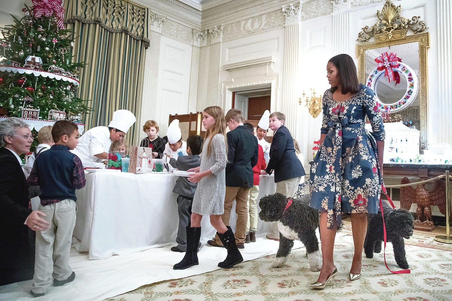 Paskutinių Obamų šeimos Kalėdų Baltuosiuose rūmuose tema – „Švenčių dovana“.