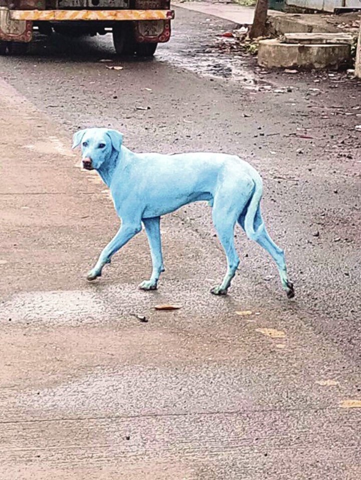 Vietiniai gyventojai pastebėjo mažiausiai 11 šunų melsvu kailiu. Pirmasis keistos spalvos keturkojis buvo aptiktas rugpjūčio 11 dieną. Sunerimę indai puolė skųstis Maharaštros valstijos taršos kontrolės valdybai.