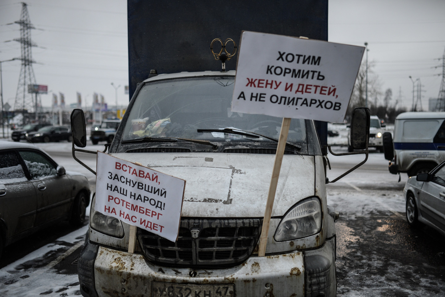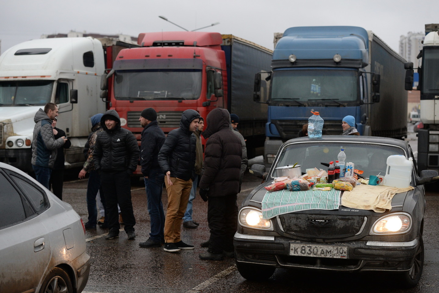 „Vieną kartą mes sniege ėmėme braižyti savo planus ir jau netrukus čia atvyko gausios policijos pajėgos“, – pasakoja 33-ejų sunkvežimio vairuotojas Sergejus Gorodišeninas.