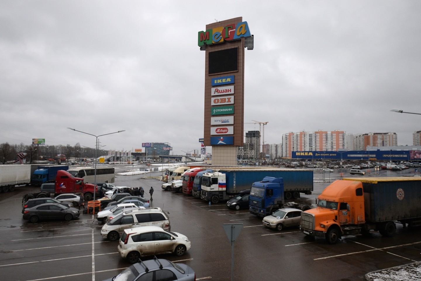 Štai taip stačiatikių Kalėdas sutiko Rusijos vilkikų vairuotojai, kurie nuo gruodžio 3-iosios nepalieka Maskvos Chimkų rajone esančios prekybos centro „Ikea“ aikštelės.
