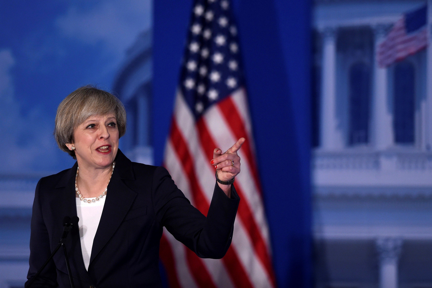 Savo kalboje Th.May pritarė D.Trumpo įspėjimams, kad JAV