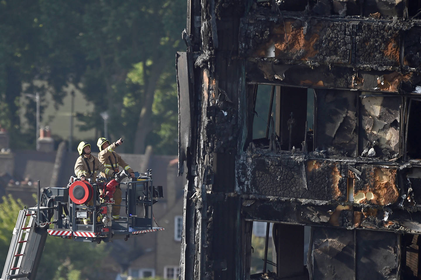 Gaisras kilo, kai užsidegė šaldytuvas viename bute, o liepsnos sparčiai paplito, nes pastato išorė buvo apkalta pigia medžiaga, kuri nebuvo atspari ugniai, nors tokia turėjo būti.
