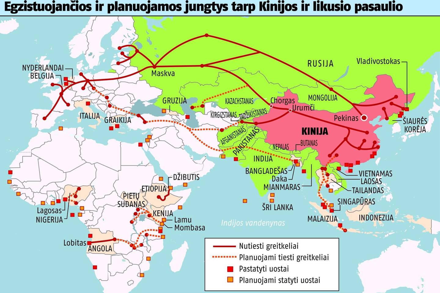 Plėtodama pasaulinę infrastruktūrą ir stiprindama valstybių tarpusavio ryšius Kinija viliasi, kad privers savo ekonomiką augti kaip ant mielių.