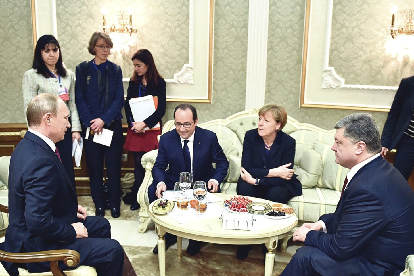 Lyderiai taip pat neaptarė, kas turi sumokėti už suniokotą Donbasą, bet Kremliaus šeimininkas ragino Ukrainą pakeisti konstituciją, kad sukilėlių kontroliuojamam regionui būtų suteiktas ypatingas statusas, o Ukrainos teritoriją užgrobusiems asmenims reikalavo amnestijos.
