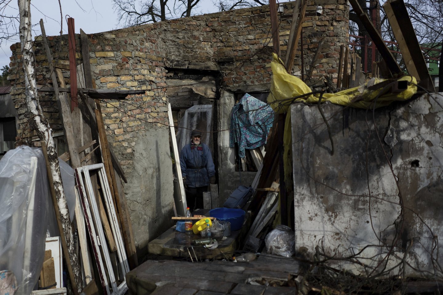 Po to, kai buvo sugriautas jų namas, pora persikėlė į Volodymyro brolio butą Ukrainos kontroliuojamoje Irpinės dalyje. Jų gatvė tapo pilkąja zona tarp dviejų kariuomenių. Sugrįžti į savo sugriautus namus ir pradėti valyti nuolaužas jie galėjo tik išlaisvinus Kijevo sritį.