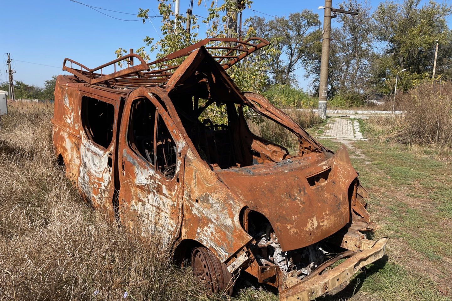 Nustebau ir aš, nes vykau telefone įsijungęs žemėlapinę „Vaze“ programėlę, ir vykau ten, kur ji rodė. Vos vienas kilometras – tiek arti Rusijos sienos dar nebuvau šiame kare atsidūręs. Tikrumoje net neketinau tiek rizikuoti, planavau vykti į miestelį, esantį penkis kilometrus nuo pasienio.