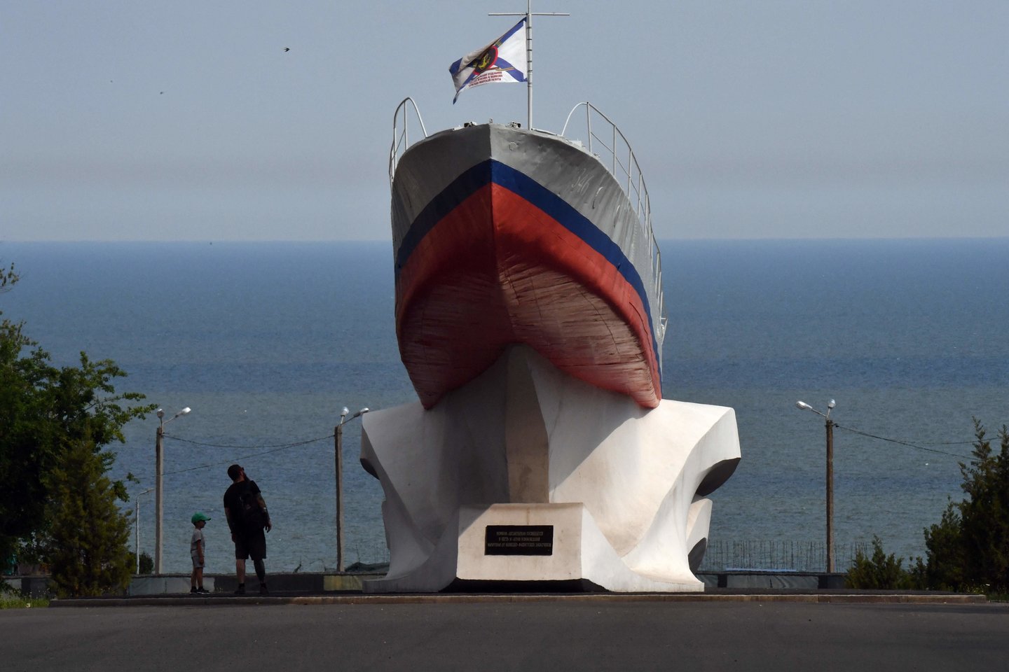 Parke, kur vėjyje plevėsuoja Rusijos vėliavos, iškabinti plakatai, kuriuose pagerbiami per puolimą žuvę rusų kariai ir vadinami „mūsų laikų didvyriais“ – tai užuomina į rusų rašytojo Michailo Lermontovo kūrinį.
