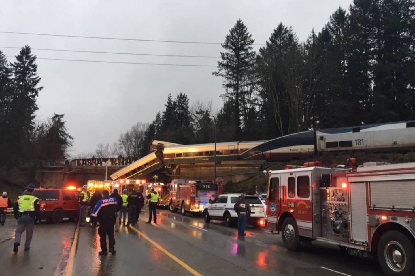 Geležinkelių kompanija „Amtrak“ patvirtino, kad pirmadienį apie 7 val. 40 min. vietos (17 val. 40 min. Lietuvos) laiku ant viaduko virš judraus 5-tojo greitkelio įvykusi nelaimė ištiko 501-ojo reiso traukinį.