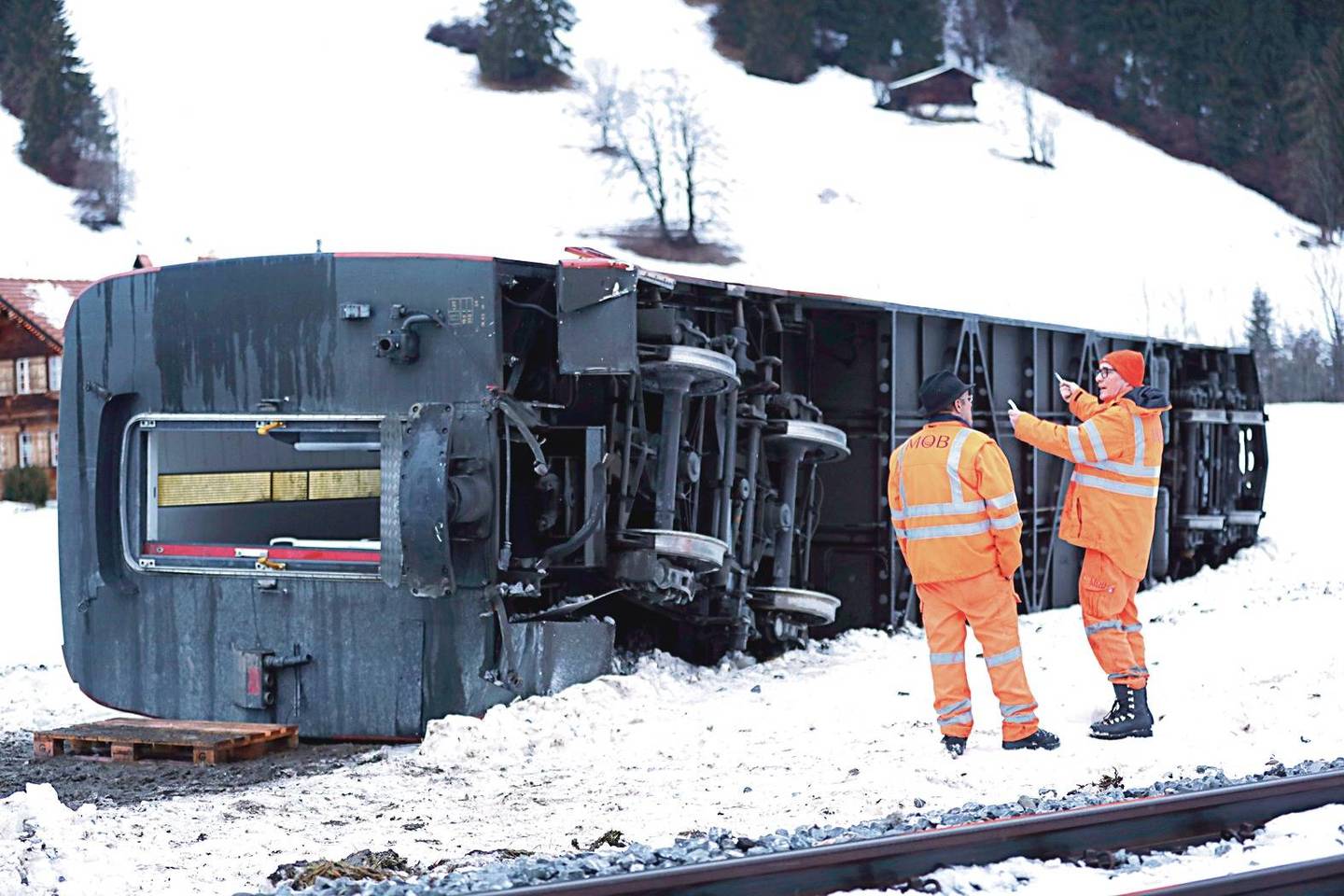 Tuo metu Šveicarijoje vėjas nupūtė traukinį nuo geležinkelio bėgių – per incidentą sužeisti aštuoni asmenys.