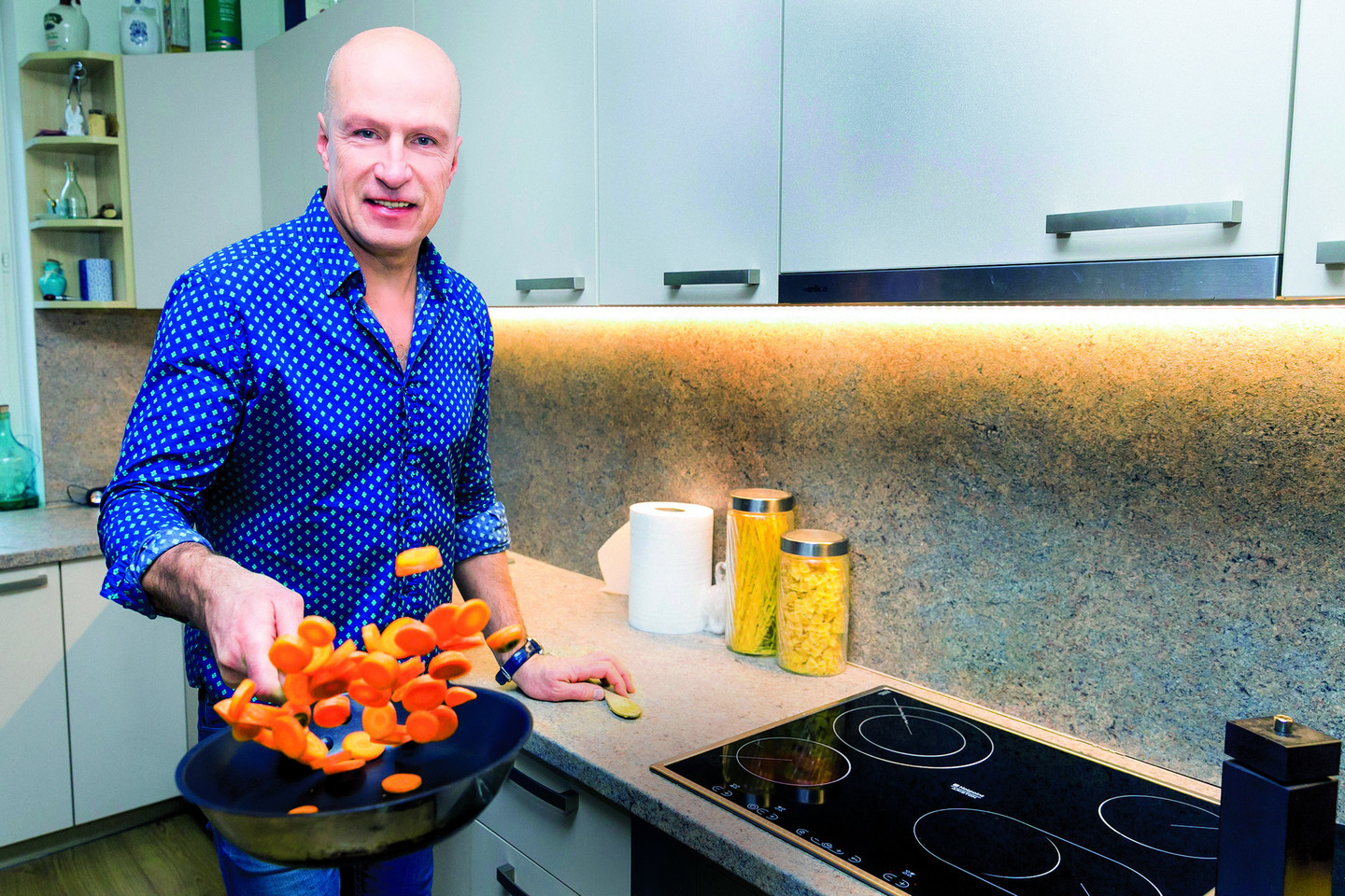 „Paprastai rytą pradedu energingai. Ilgai sau lovoje lepintis neleidžiu. Pusryčiauju visuomet. Stengiuosi rinktis energijos teikiančius patiekalus, dažnai – daržovėmis pagardintą košę“, – kalbėjo E.Sipavičius.