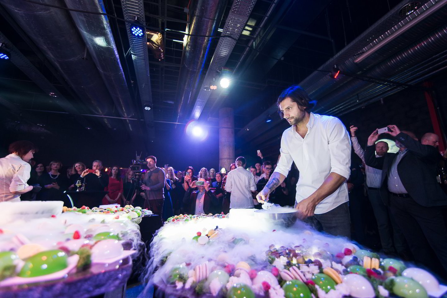 Desertas, tapęs „Volfas Engelman“ jubiliejaus šventės finaliniu akcentu, įspūdingai pristatytas naudojant ledą ir azoto dūmus. Šaltu dūmu garuojančius desertus svečiams į lėkštutes dalijo ir pats A.Gadžijevas, kuris mielai šnekučiavosi su svečiais, visiems smalsiausiems komentavo desertų sudėtį, patarė, kurį desertą pasirinkti.