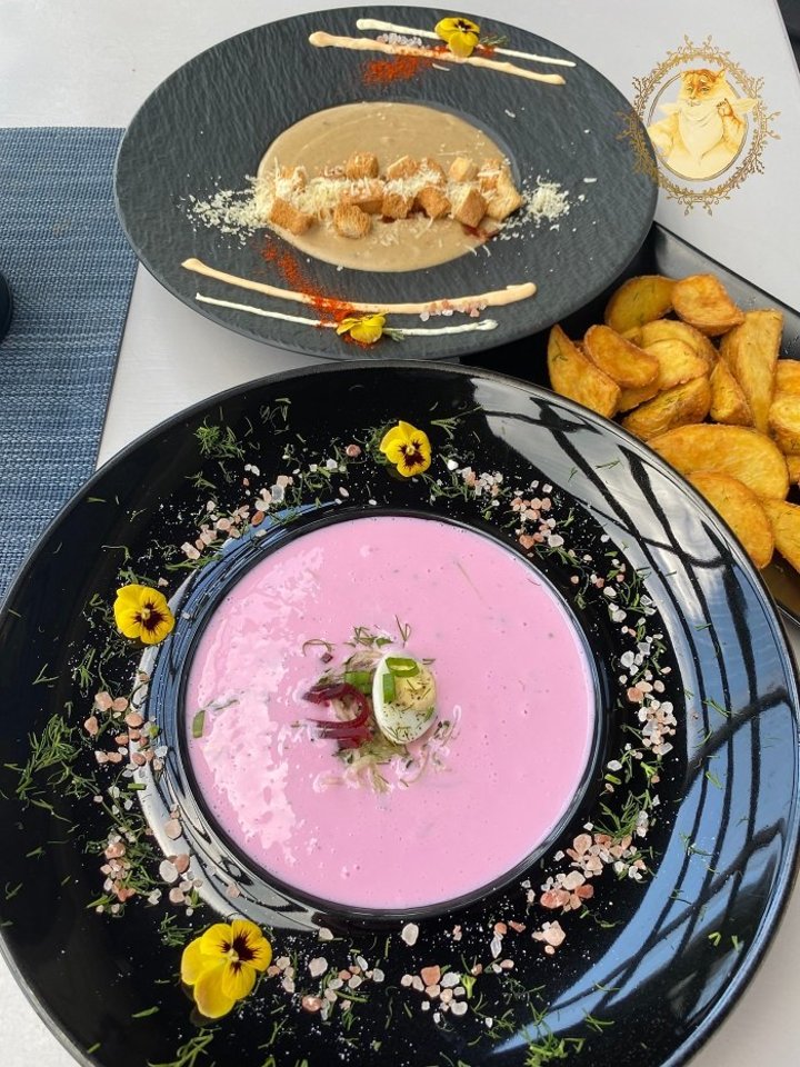 Fotografuodamas šaltibarščius aš prisiminiau šaltibarščius mūsų pajūryje. Jie šiems neprilygo ne tik patiekimu, ar skoniu, bet ir kaina. Šio meno kūrinio kaina – tik 4 eurai.