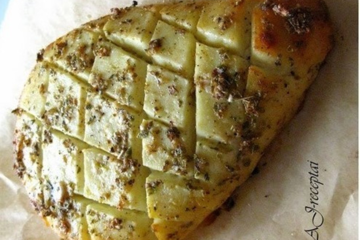 Kepame ant kepimo popieriaus (dar geriau – ant folijos) iki 190 C įkaitintoje orkaitėje apie 30 min., arba kol gražiai apskrus.