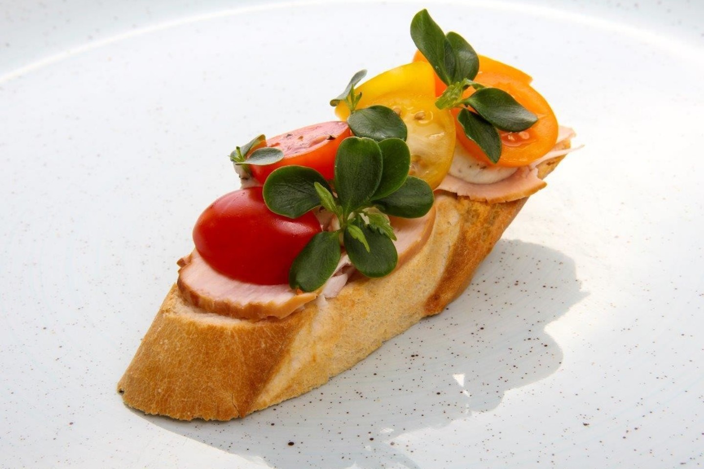 1. Sumuštiniai su rūkyta vištienos file ir vyšniniais pomidorais